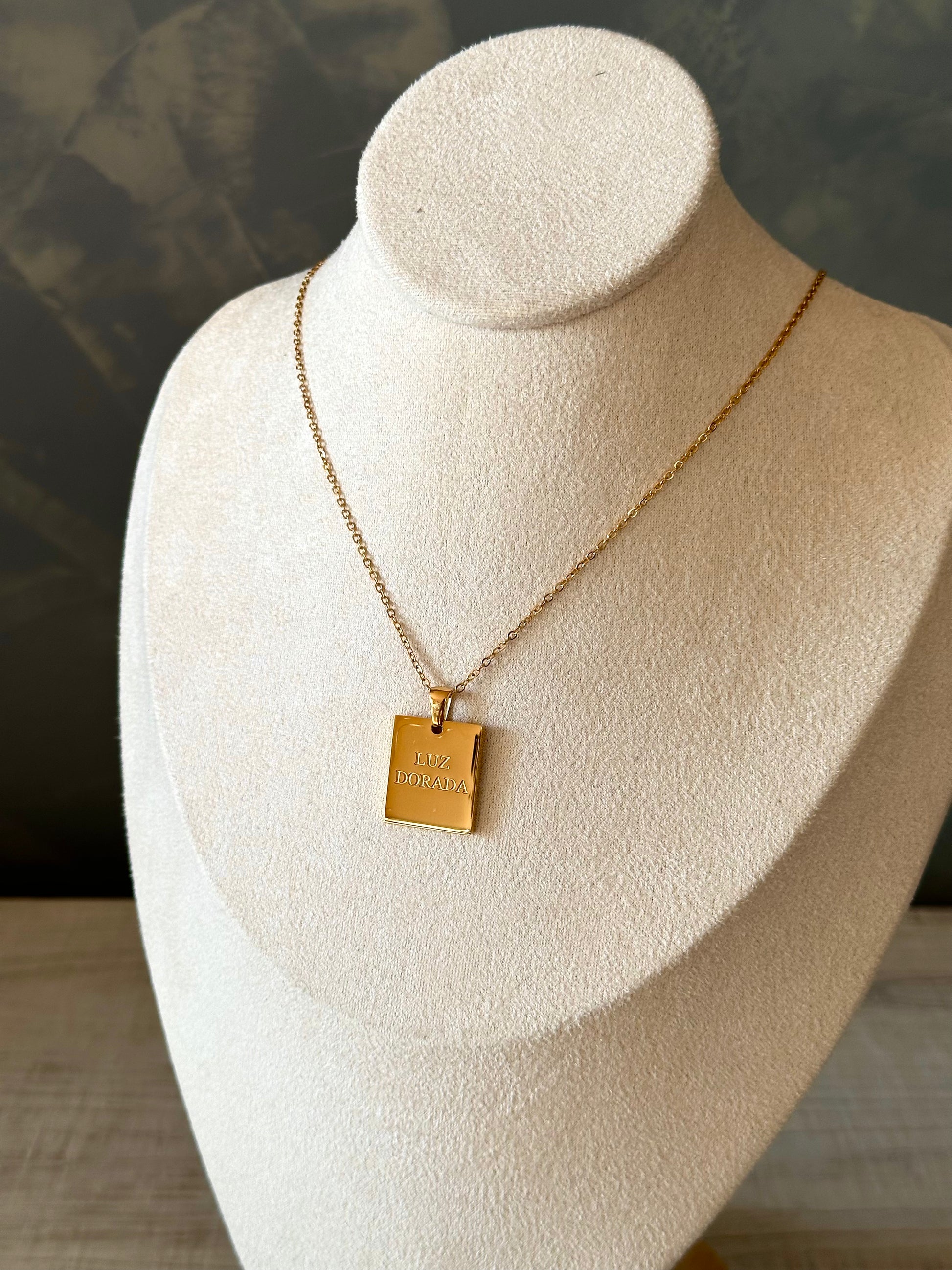 El corazón de la marca, la pieza que lo dice todo: Luz Dorada es el collar con más cariño de nuestra colección, el único personalizado con el nombre de la marca grabado en su delicada chapita, un símbolo de identidad, cuidado y elegancia atemporal.
